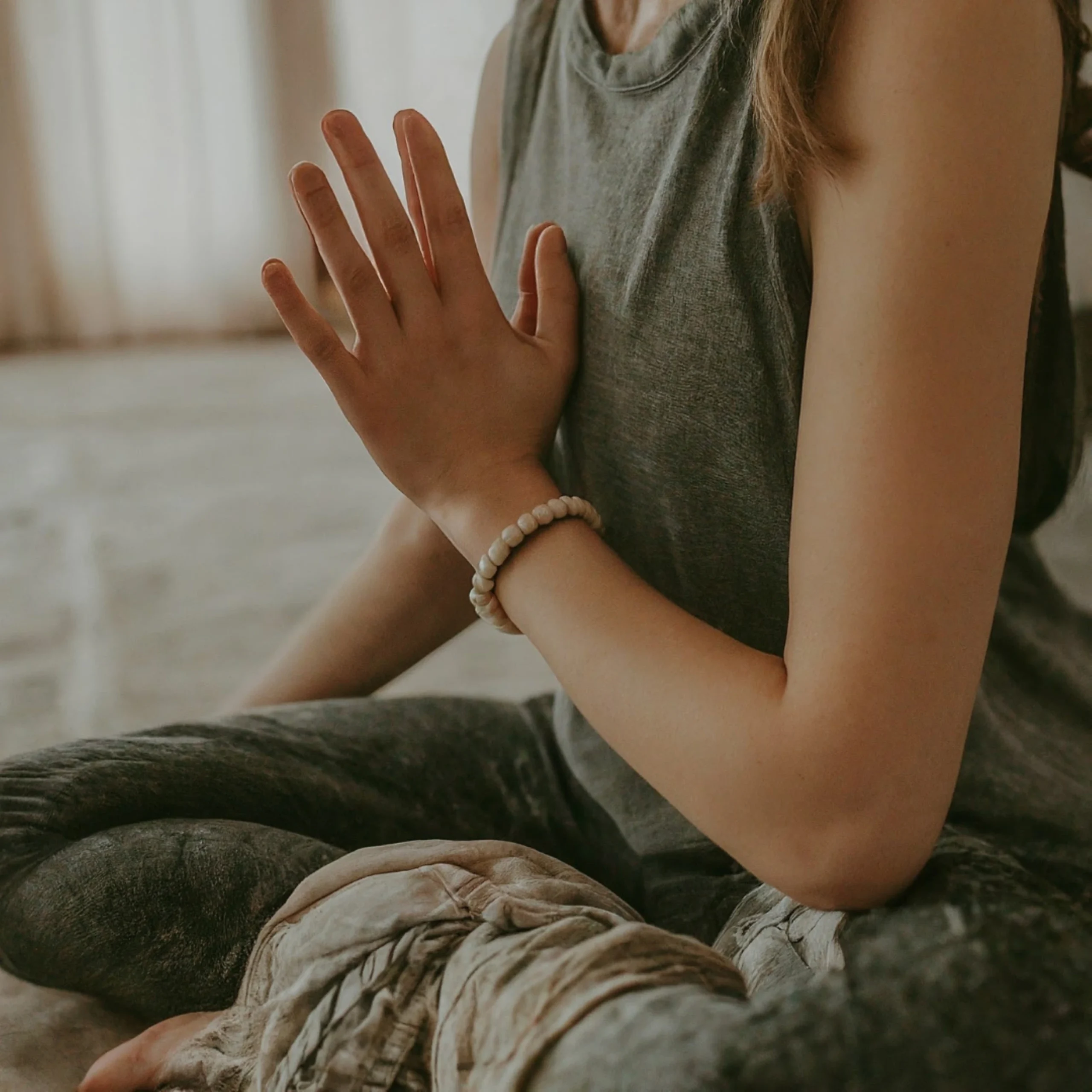 Eine Hand auf dem Herzen. Ein Moment des Innehaltens. „Ich bin nicht dieser Körper.“